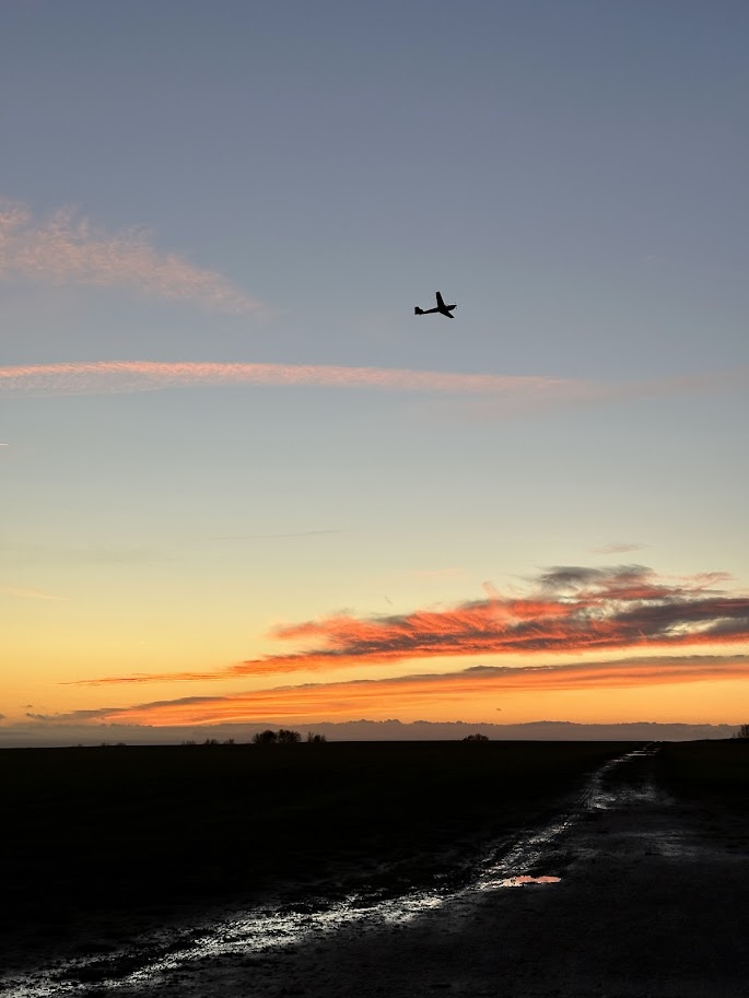 Friday was our last full day at the club. At that point, we had enjoyed plenty of flights, delightful dinners in the clubhouse and at Thirsk, and each of us had stacked a few more hours in our logbooks. Unfortunately, Friday was not particularly favourable. We decided to open the hangar in the afternoon, and only Kate and Tereza managed to get one flight each until we started dealing with too much canopy misting to carry on launching. Peter and Chara got to do some flying in the TMG to prevent FOMO. Chara was lucky enough to have a sunset flight, but barely enjoyed the view as she was focused on circuit practice. Thankfully, the ground crew captured some beautiful shots!