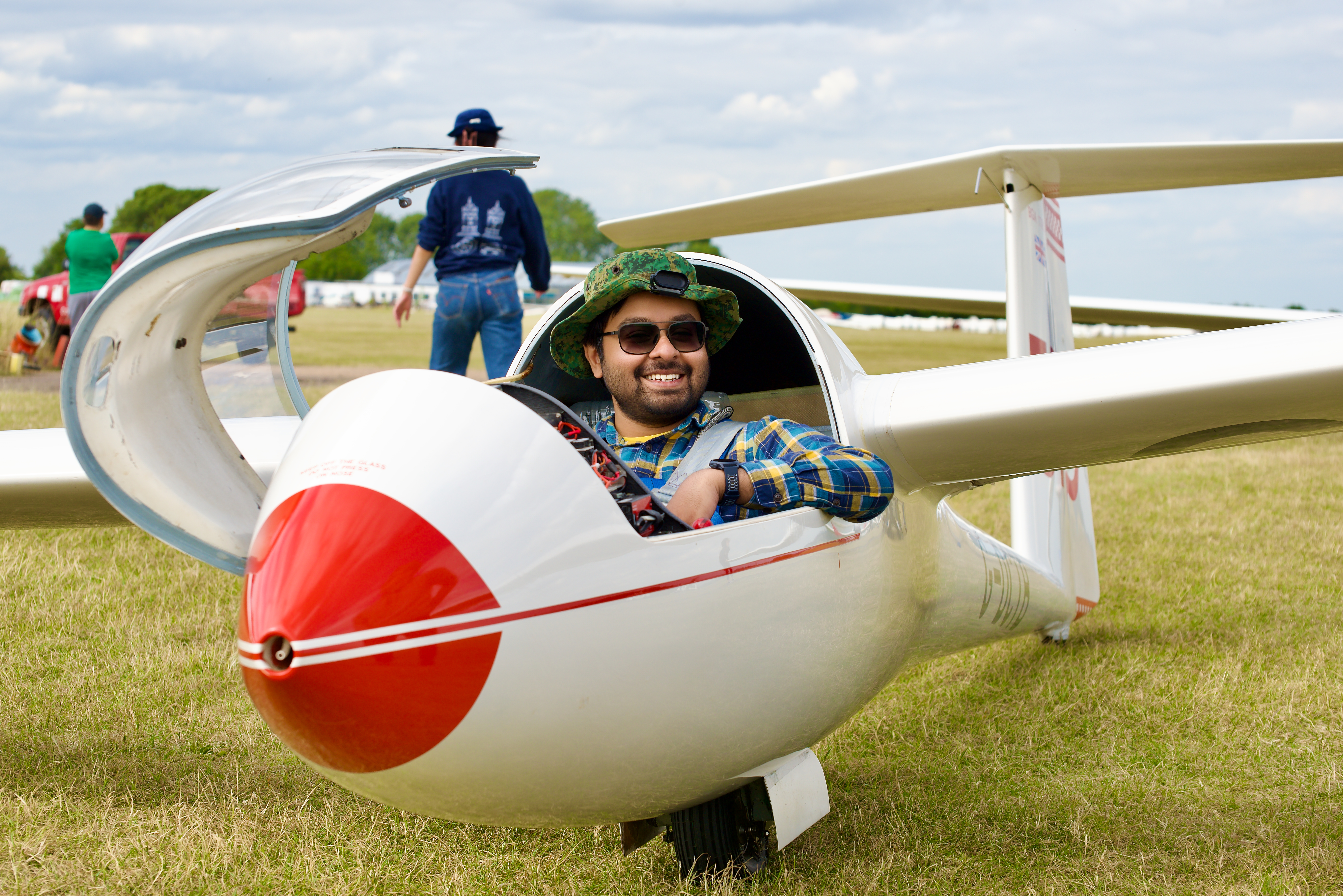 Mabel was next. After inspecting the Junior ‘VB’ and bringing it online, she soon realised the rudder was not resting neutral. When she tried centralizing the rudder, there was a strong force pushing it fully to the right. After calling for help, we found out that VB’s rudder was missing the left spring, therefore making the rudder rest in the full right position (…and that’s why we do our pre-flight checks!). After declaring VB unserviceable, we were fortunate enough to find that HDU was still available. Mabel then went on to get a good 40-minute flight in the Junior.
